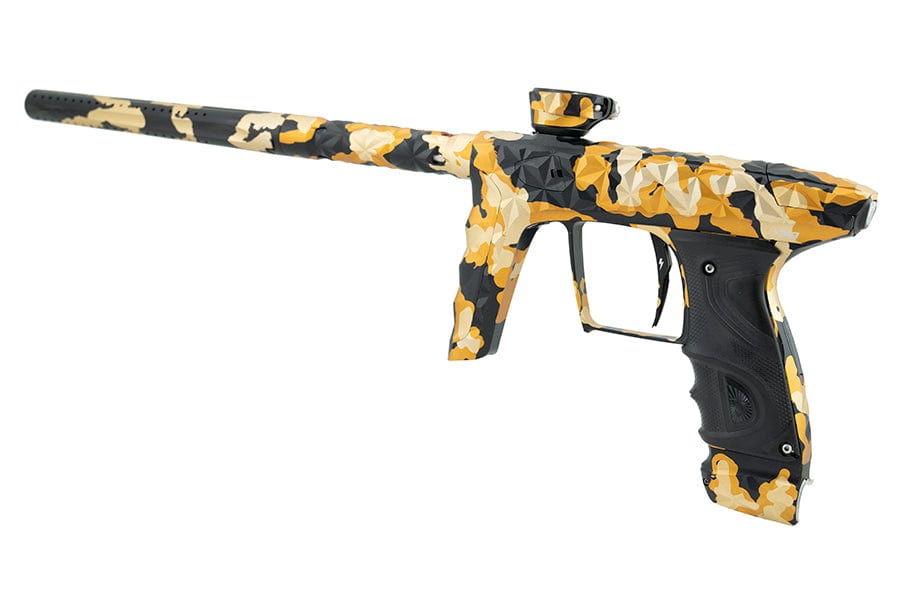 In dust black and dust dark gold camouflage masked pattern. Example available.